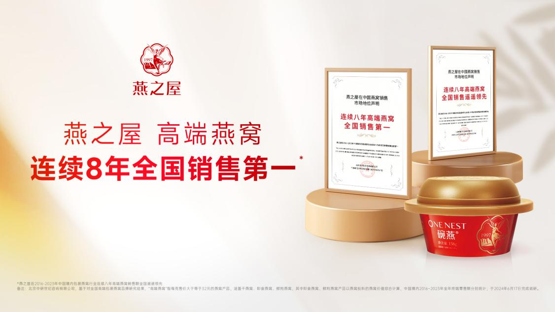 燕之屋連續(xù)八年高端燕窩全國銷售穩(wěn)居第一,詮釋頭部品牌實力