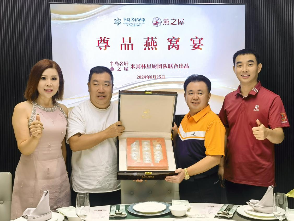 燕之屋26年專注高品質(zhì)燕窩,秉承“一碗好燕窩,滋潤天下人”的品牌初心,以前沿科技創(chuàng)新燕窩滋養(yǎng)體驗,以高品質(zhì)產(chǎn)品和服務(wù)滿足消費者多元需求,引領(lǐng)更多人步入燕窩賦予的美與健康生活方式。2021年,燕之屋成為中國國家擊劍隊指定燕窩產(chǎn)品;2023年,燕之屋于港交所成功上市(股票代碼:01497.HK),贏得市場的喜愛與信賴。半島名軒酒家(白云金控店)是半島餐飲管理集團有限公司投資經(jīng)營、米其林星廚團隊主理的一家品牌粵菜食府,以美饌珍饈、優(yōu)質(zhì)服務(wù)、愜意環(huán)境為賓客提供高品位餐飲新體驗。燕之屋與半島名軒酒家(白云金控店)牽手,是粵菜風(fēng)味與中式滋補的碰撞,是精奢格調(diào)與藝術(shù)審美的疊加,二者匠心錘煉呈獻一場尊品燕窩宴,打造宴請尊貴賓客的至高禮遇。