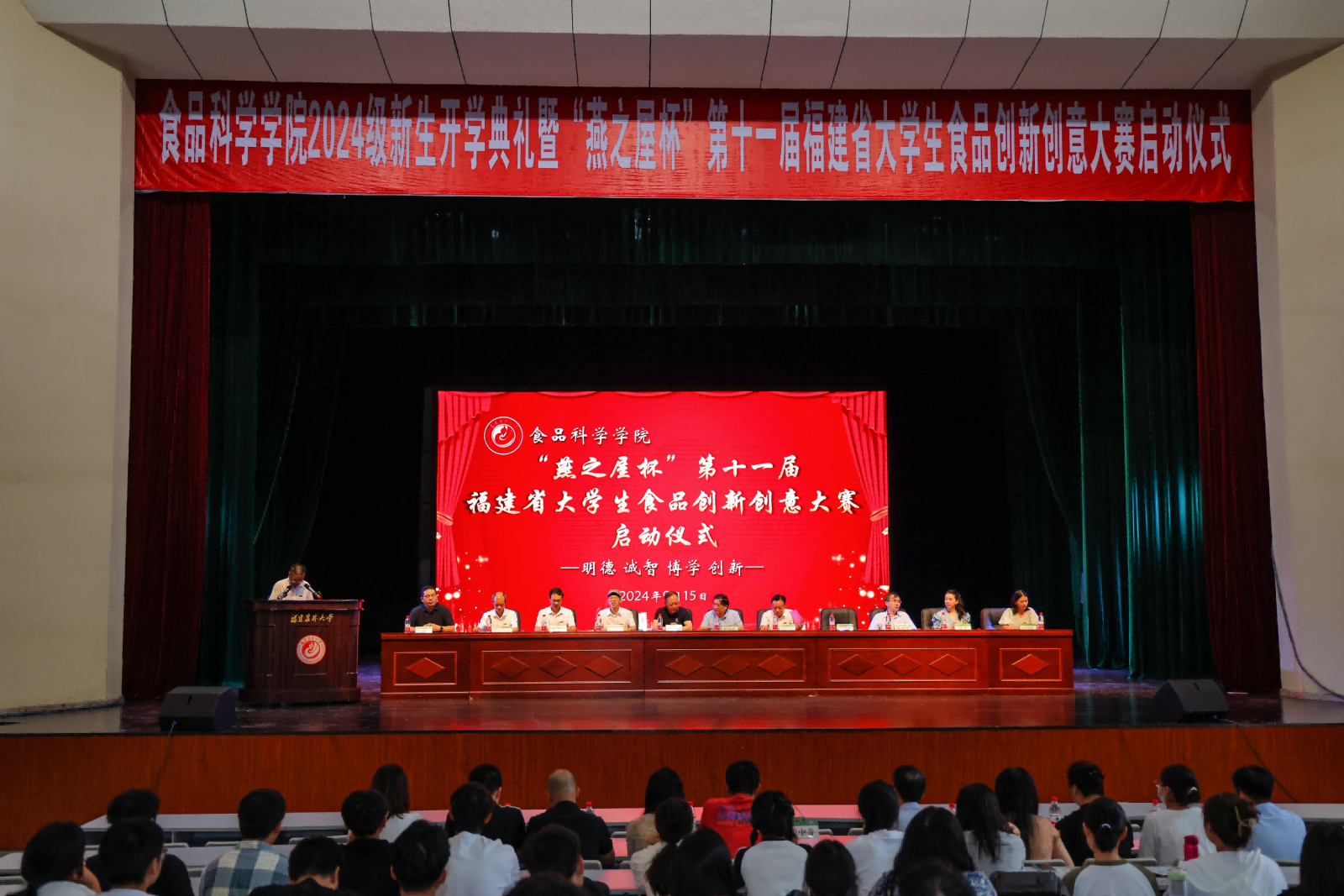 9月15日下午,以“‘燕’領(lǐng)健康潮,營(yíng)養(yǎng)新‘食’代”為主題的“燕之屋杯”第十一屆福建省大學(xué)生食品創(chuàng)新創(chuàng)意大賽啟動(dòng)儀式在福建農(nóng)林大學(xué)舉行。福建省第十一屆政協(xié)副主席陳紹軍教授,福建農(nóng)林大學(xué)副校長(zhǎng)鄭寶東教授,燕之屋創(chuàng)始人、董事長(zhǎng)黃健,福建省食品加工與貯藏工程學(xué)會(huì)理事長(zhǎng)及福建農(nóng)林大學(xué)食品科學(xué)學(xué)院黨政班子、參賽單位教師代表及學(xué)生近500人參加了啟動(dòng)儀式。啟動(dòng)儀式由食品科學(xué)學(xué)院黨委書記蘇健涵主持。