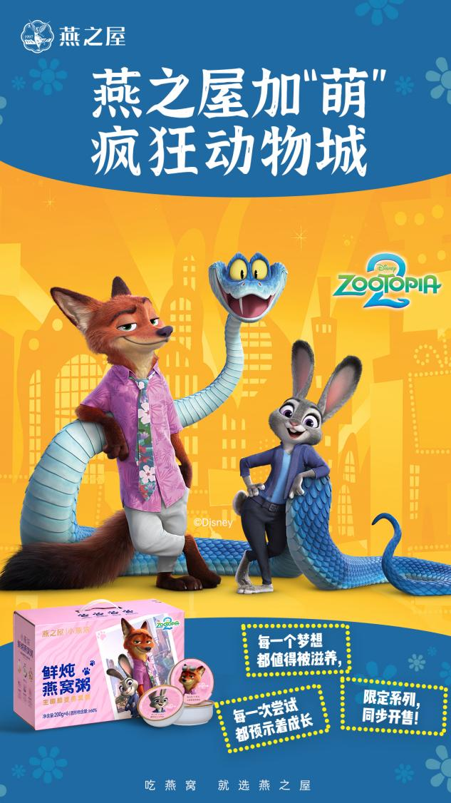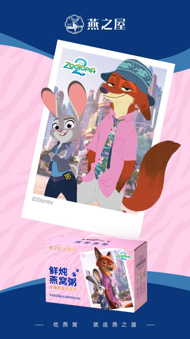 燕之屋聯(lián)合迪士尼《瘋狂動物城2》甜蜜官宣,限定燕窩粥活力全開